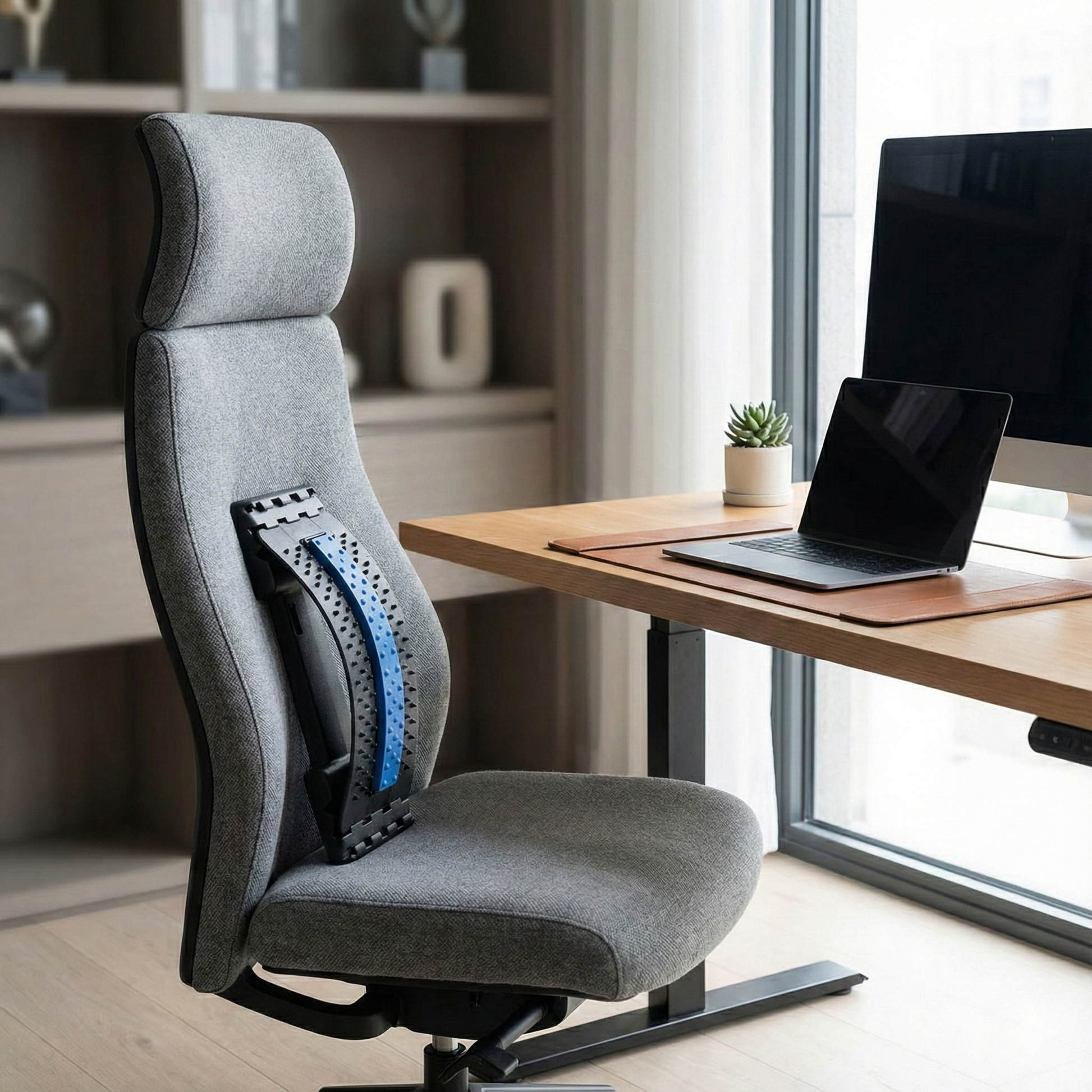 A clean, supportive way to add a gentle back stretch to your day—at home or at your desk. Adjustable height levels help you fine-tune comfort.