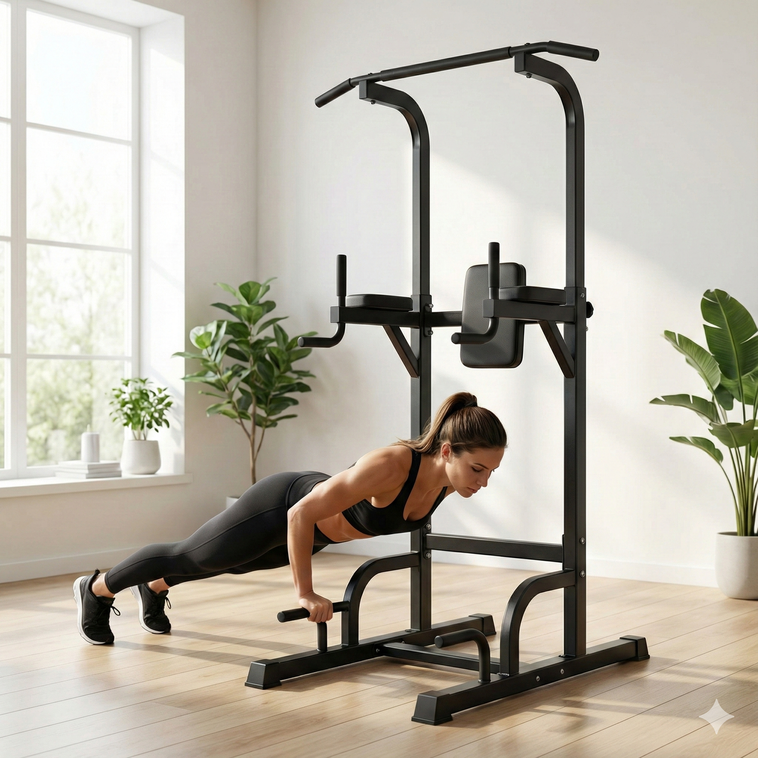 A clean, stable power tower for bodyweight strength training—designed for pull-ups, dips, push-ups, and more, with adjustable height for a better fit.