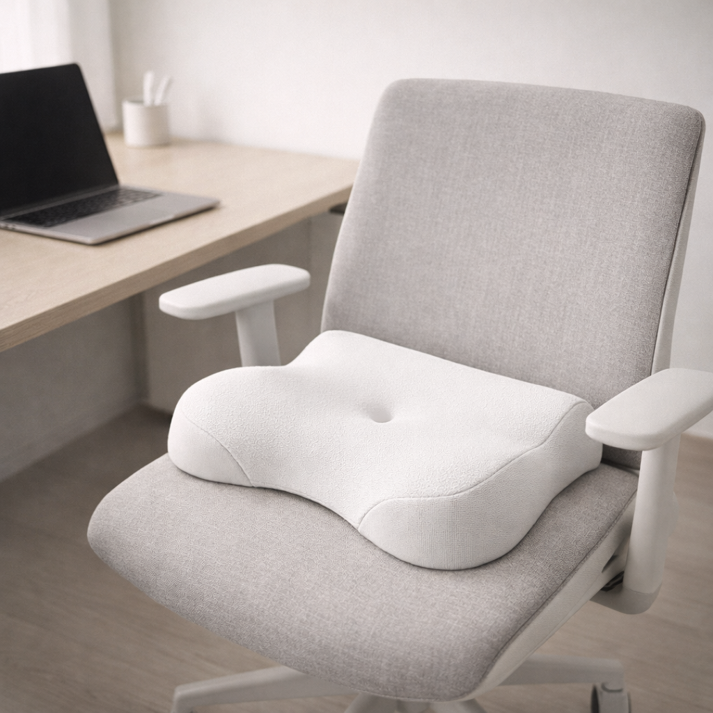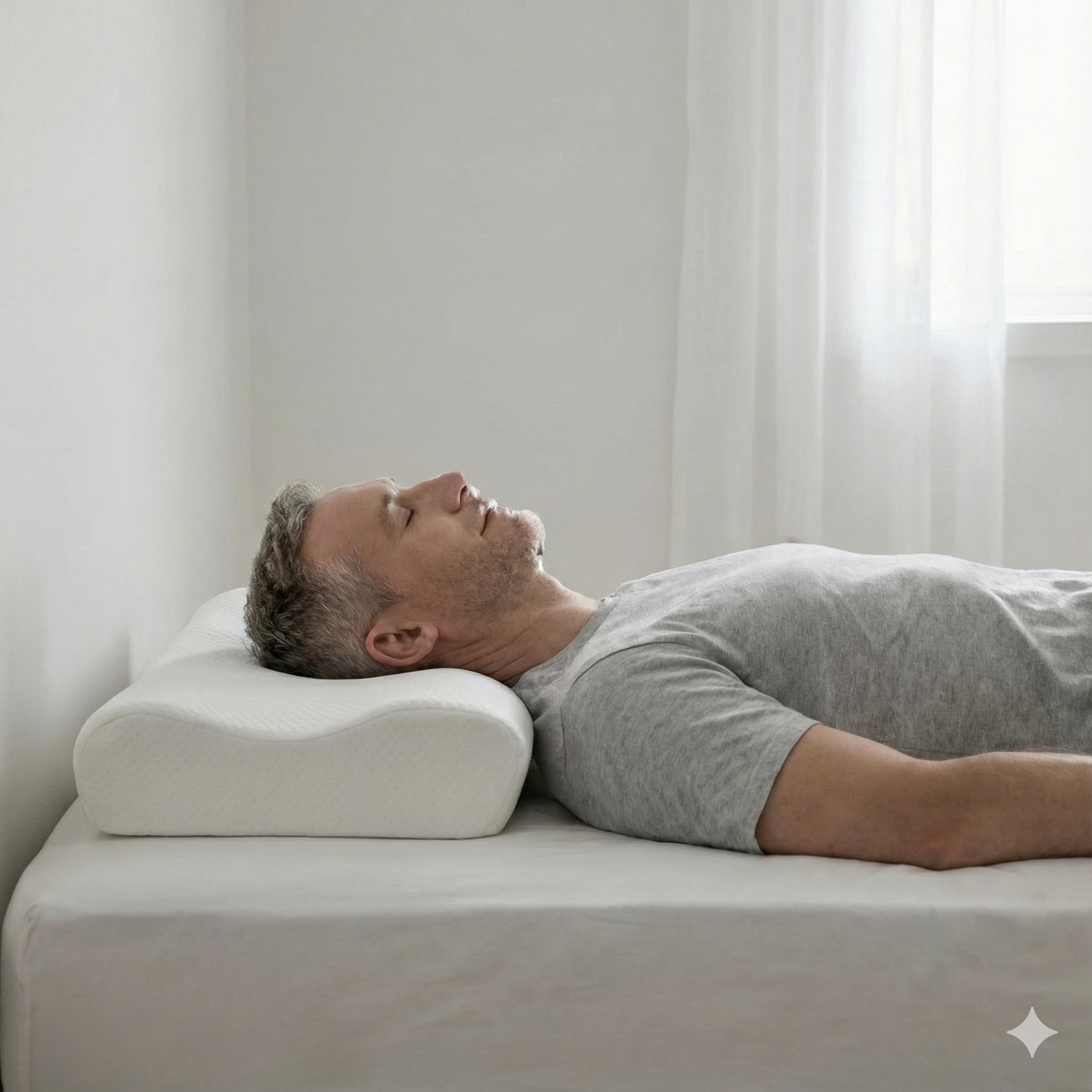 A clean, ergonomic cervical pillow with a cooling feel surface and memory foam comfort—designed for calmer nights and better wind-down routines.