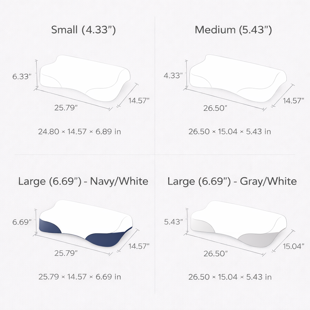 A: Start with the variant whose height (last number in the dimensions) matches your preference—lower profile for a flatter feel, higher profile for more lift.
