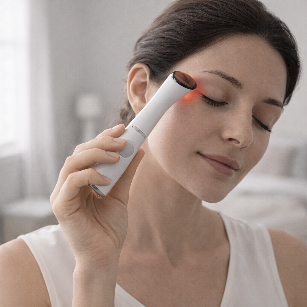For the eye area, use lightly and avoid directing light into the eyes.