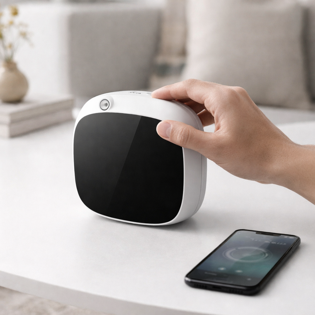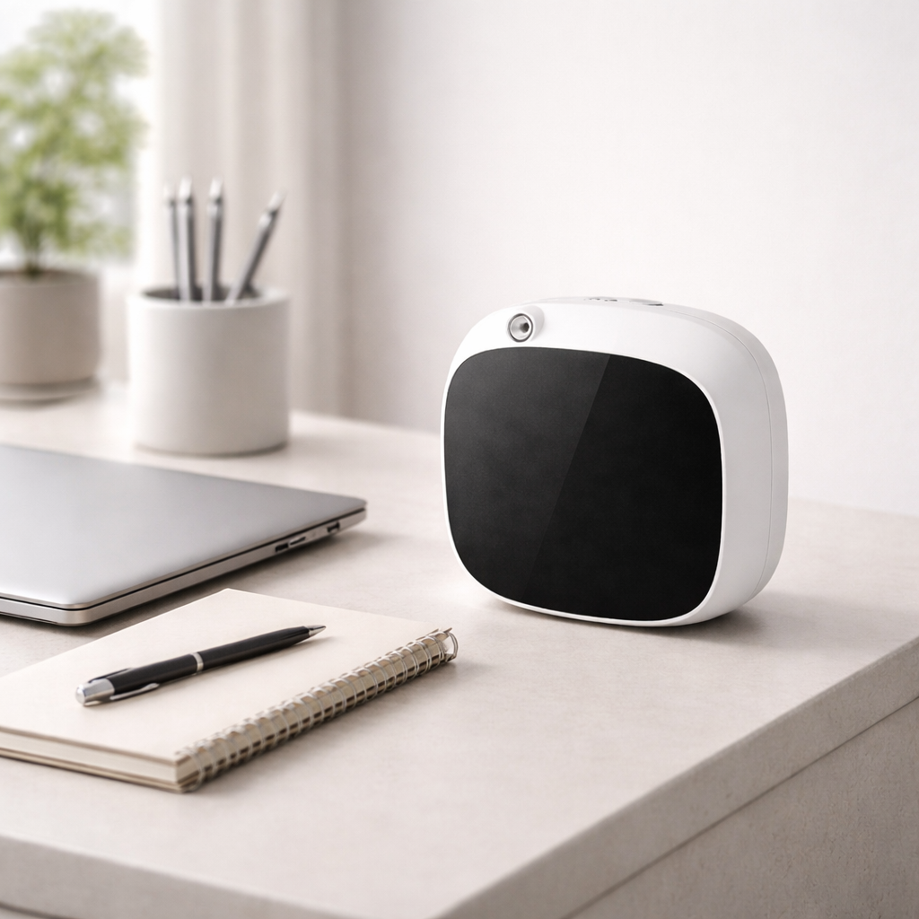 Looks modern on a shelf, desk, or wall—fits premium interiors